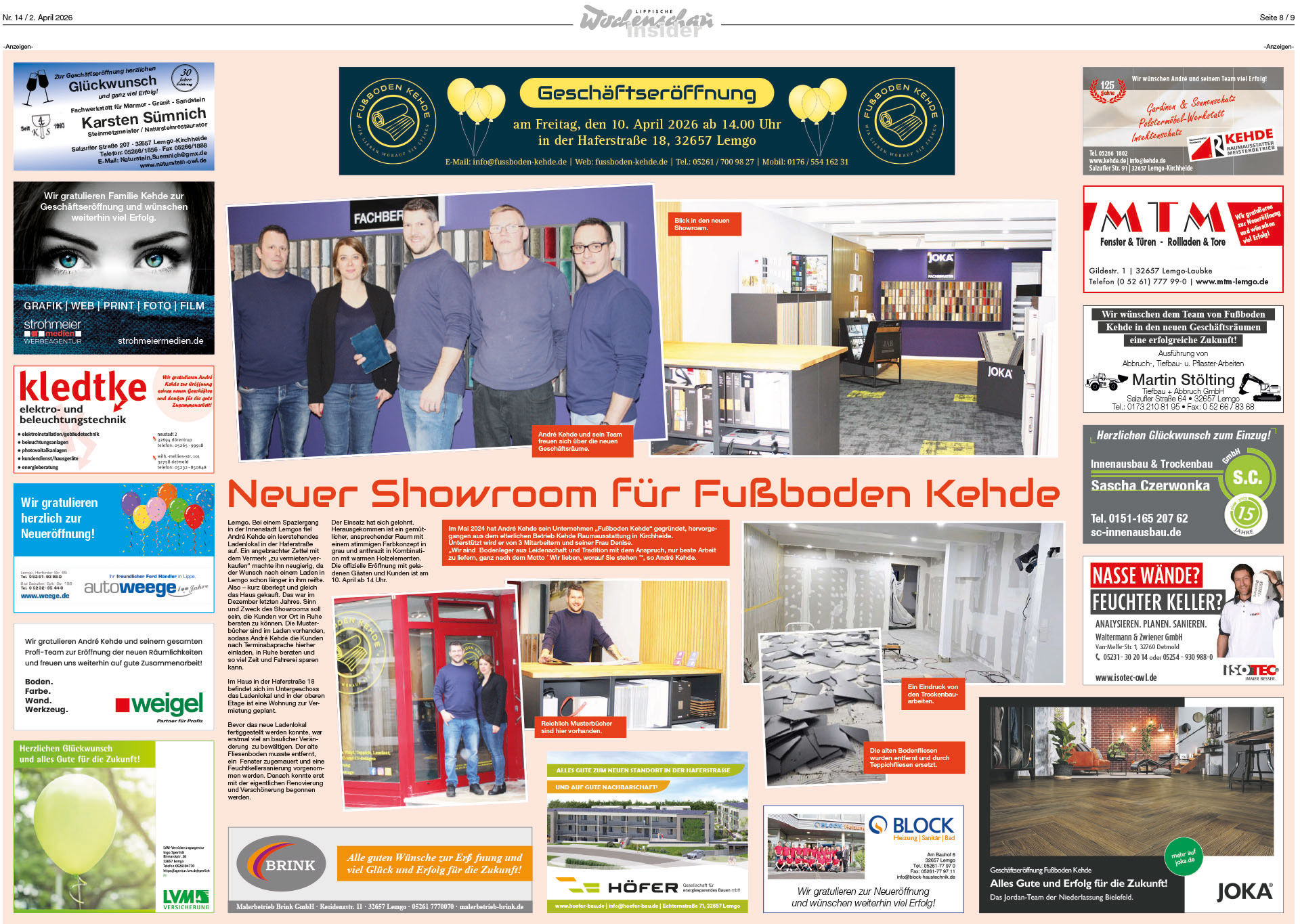 Zeitungsseiten aus der Lippischen Wochenschau 2026 KW 14 zur Eröffnung.
